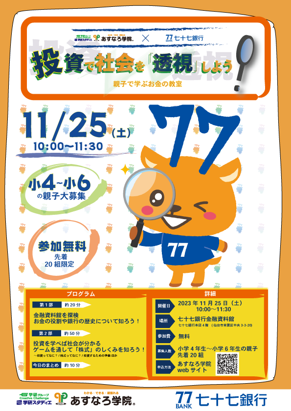 昨冬に引き続き、七十七銀行様とコラボ講座をお届けします!