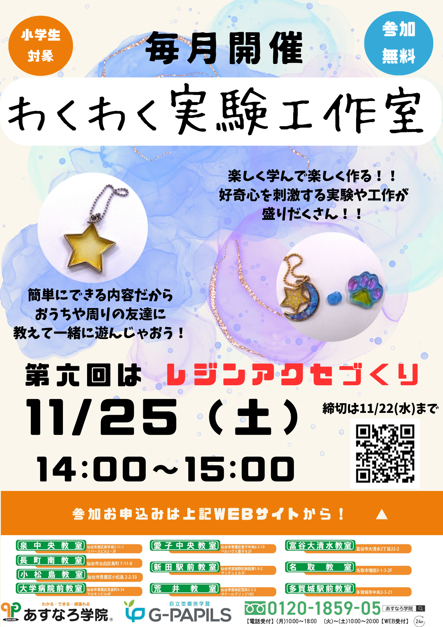 11月はレジンアクセづくり!レジンを使って、アクセサリーを作ろう!自分用でもよし、家族にプレゼント用でもよし!