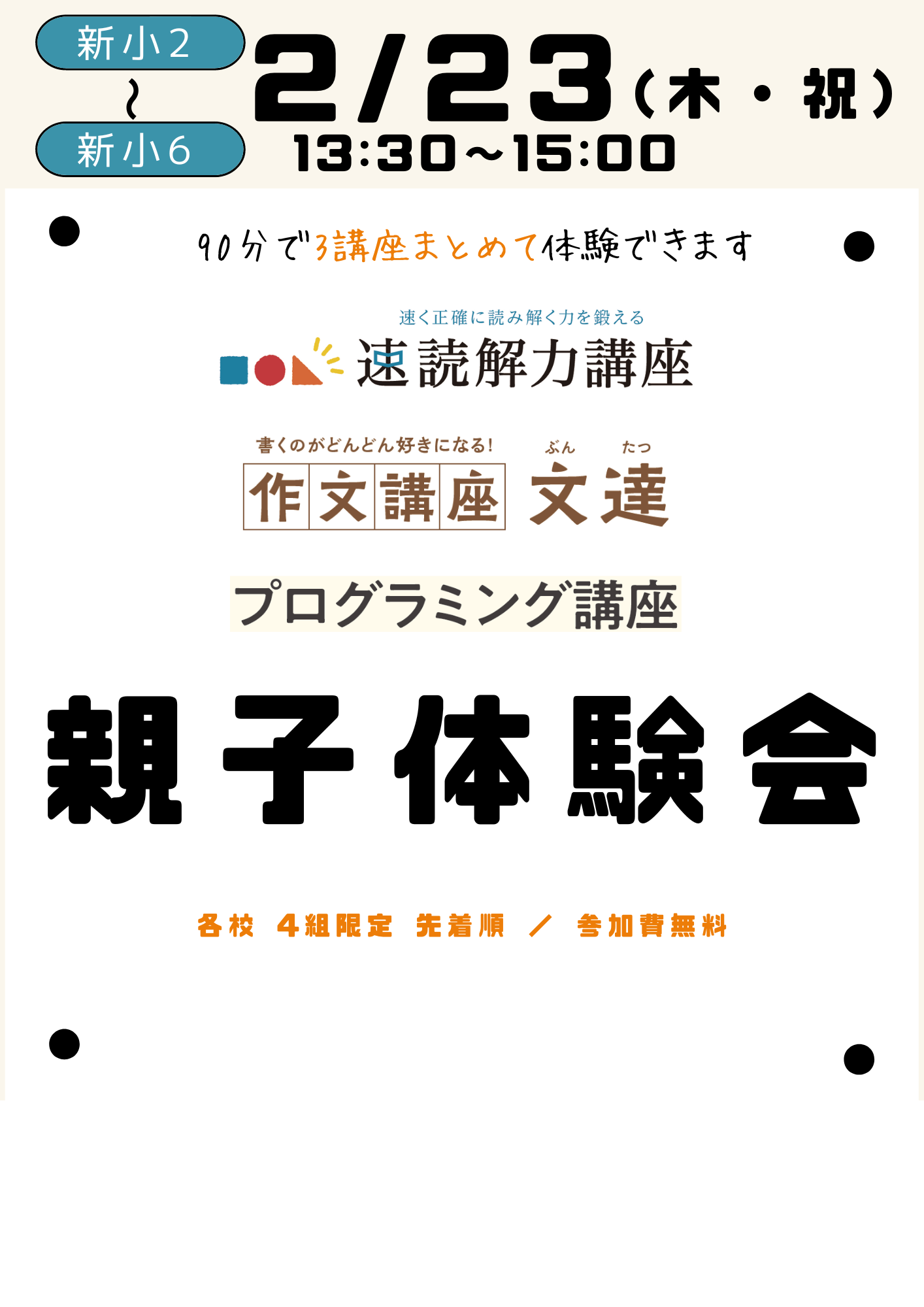 速読解力講座 速読聴英語 1/21親子体験会