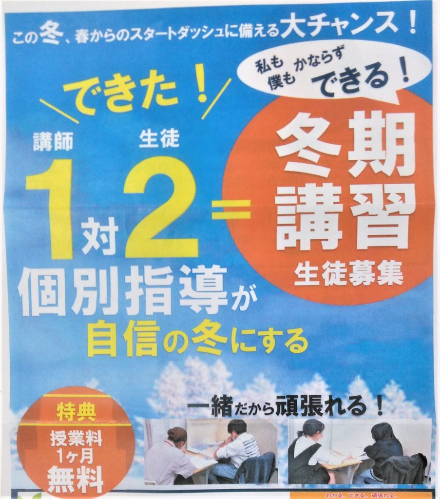 冬期講習会の募集が始まりました。