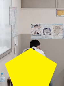 私の後ろ姿です。陵太先生が写真を撮っていました。奥にいるのが私です。