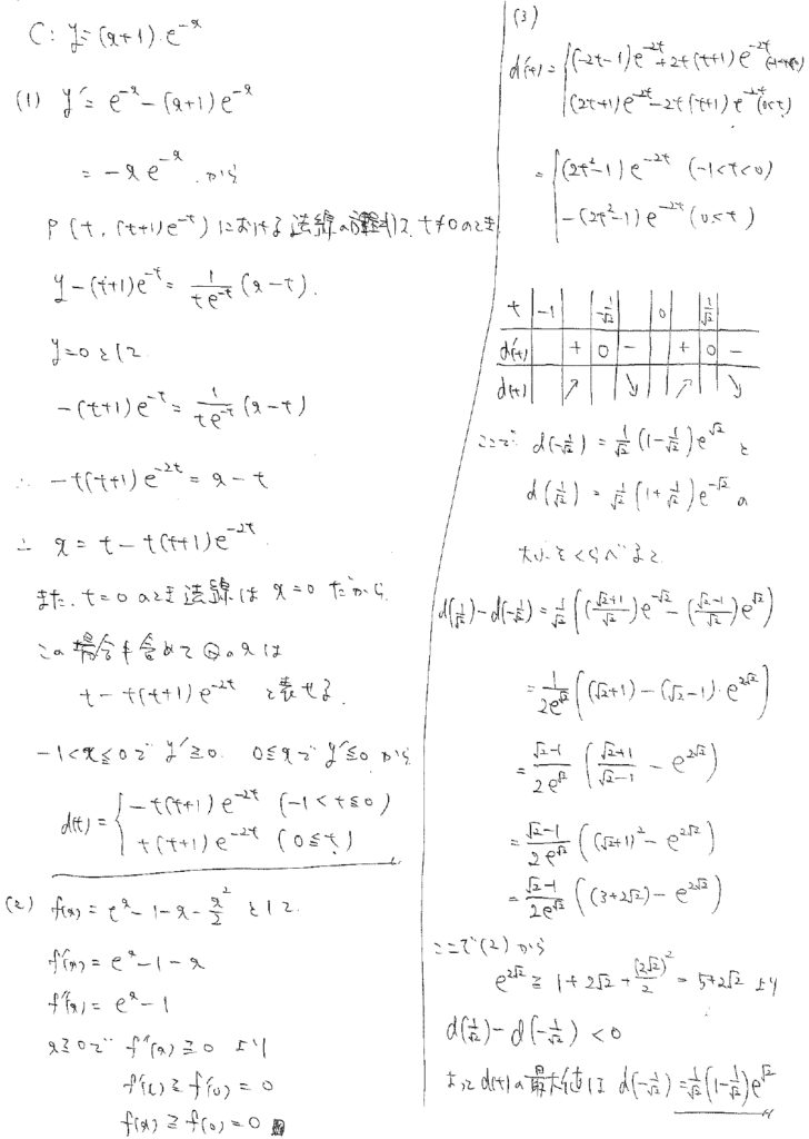 (2)の不等式は極限の不定形解消に使うのかなと思ったのですが、