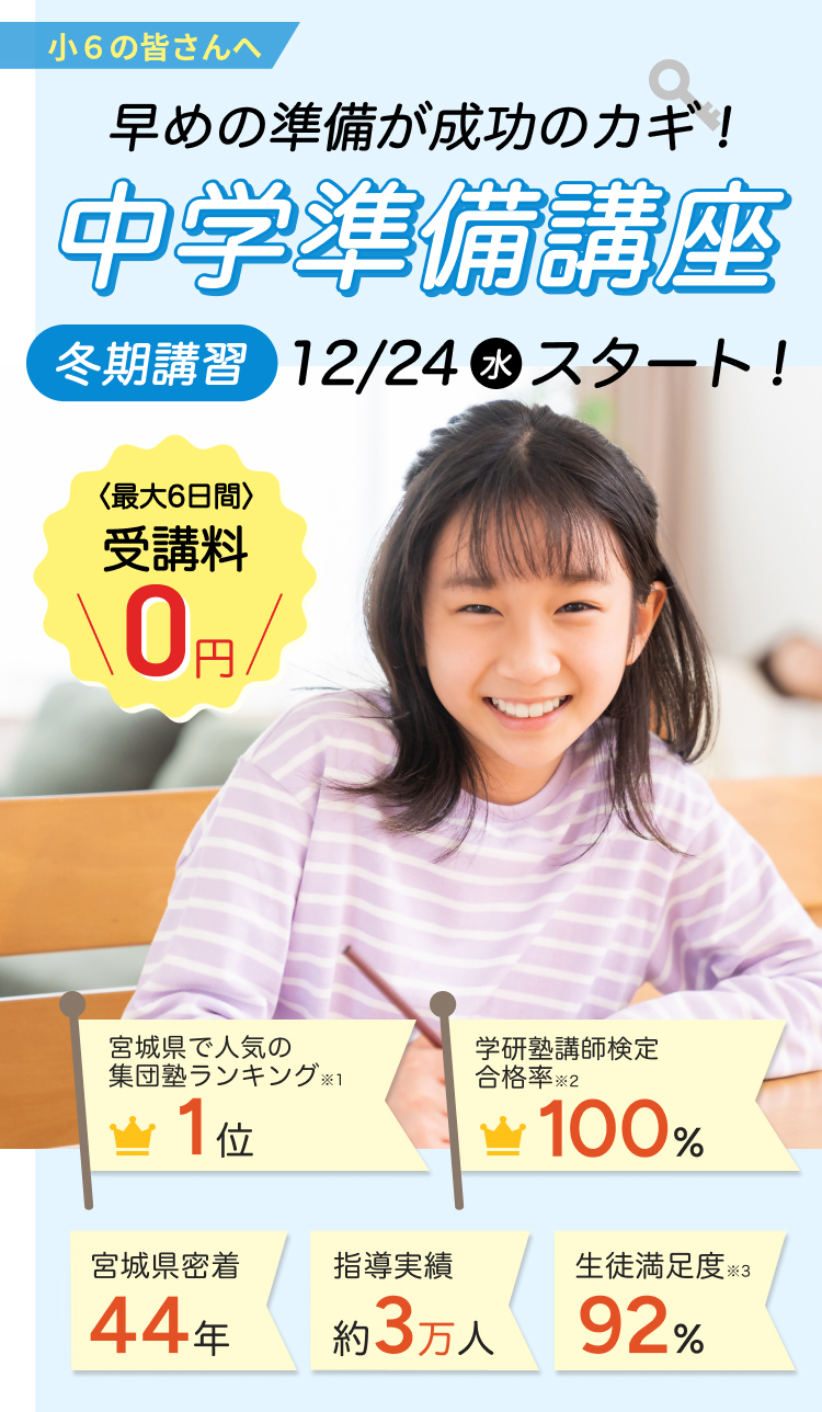 ※1 塾ナビ掲載「宮城県での人気集団塾ランキング」(2025年5月26日時点)