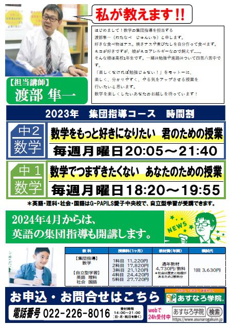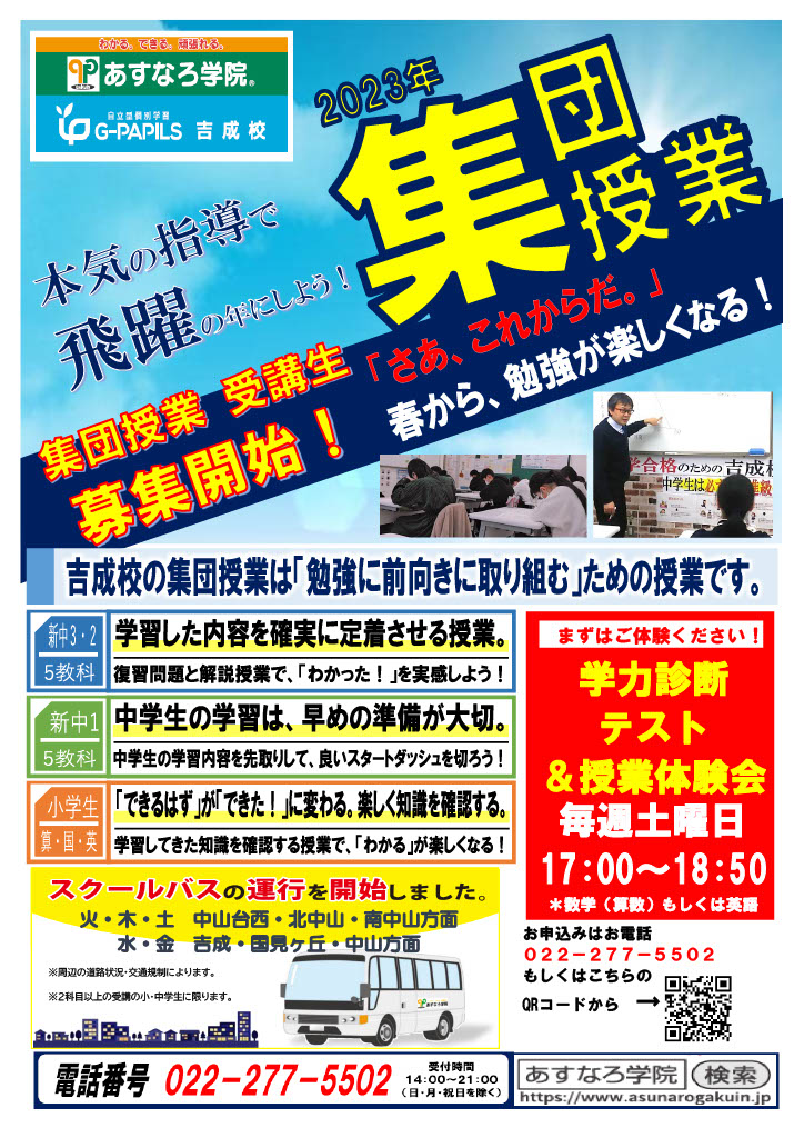 愛子中央校の授業は「定期試験の得点アップ」とともに