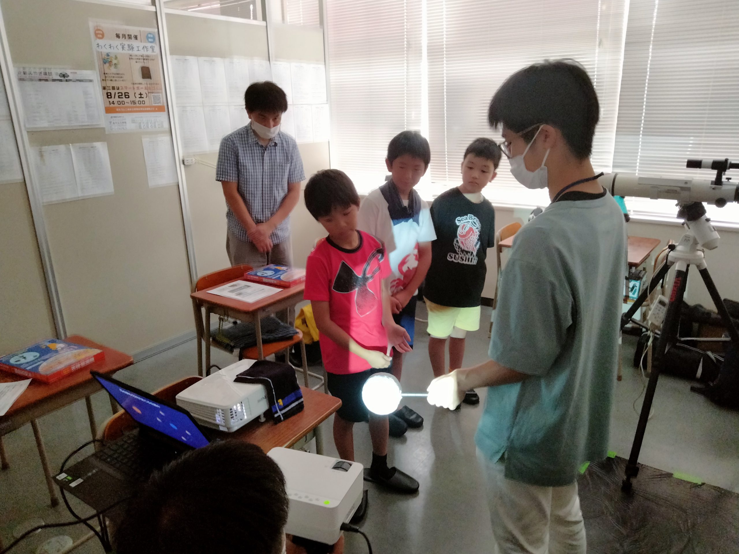 ワークショップは望遠鏡や天体に関する知識欲を刺激させるような講義の時間と、キットの組立作業や使い方の練習をする時間に分けられます。大まかな内容は以下の通りです。