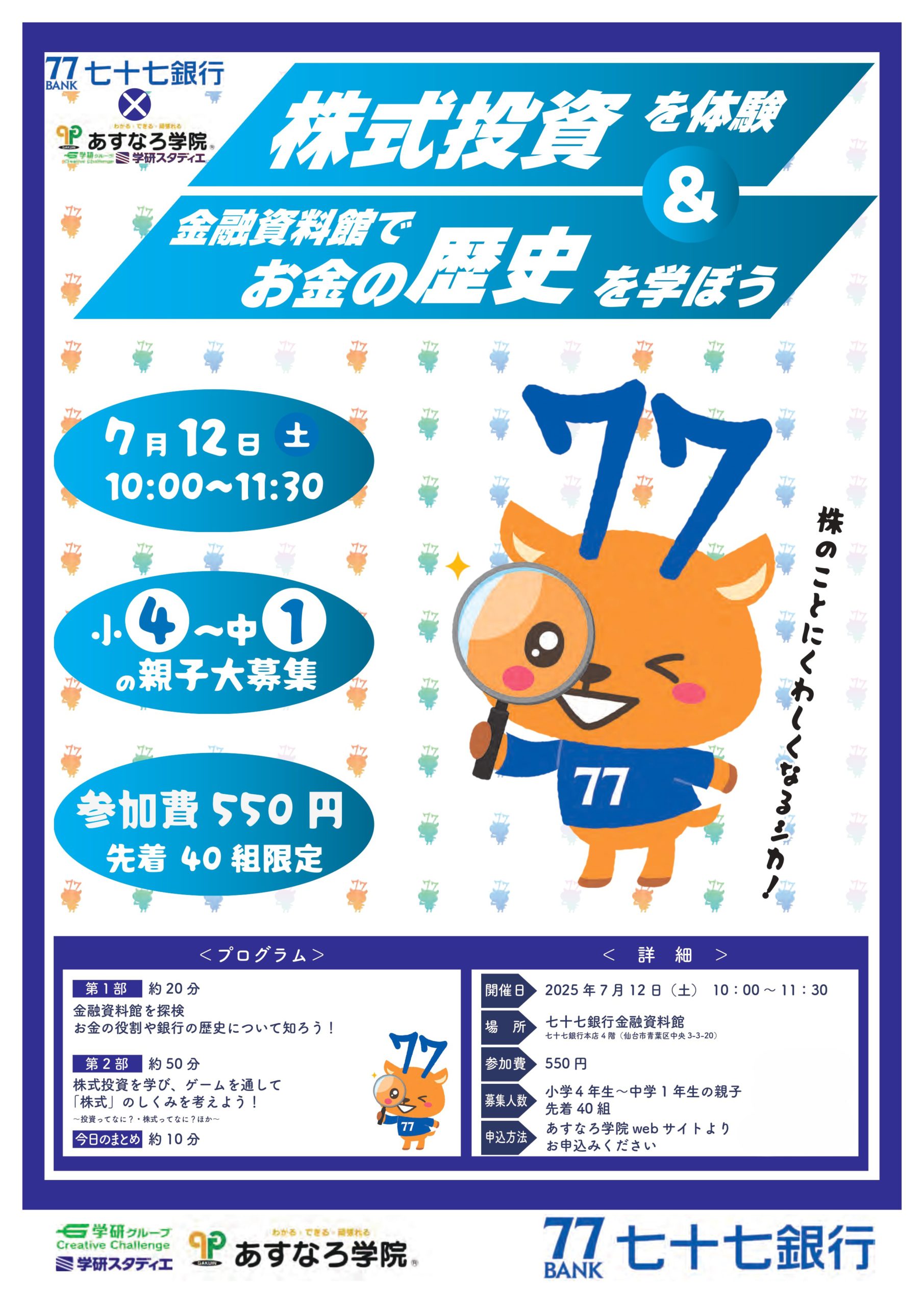 昨冬に引き続き、七十七銀行様とコラボ講座をお届けします!