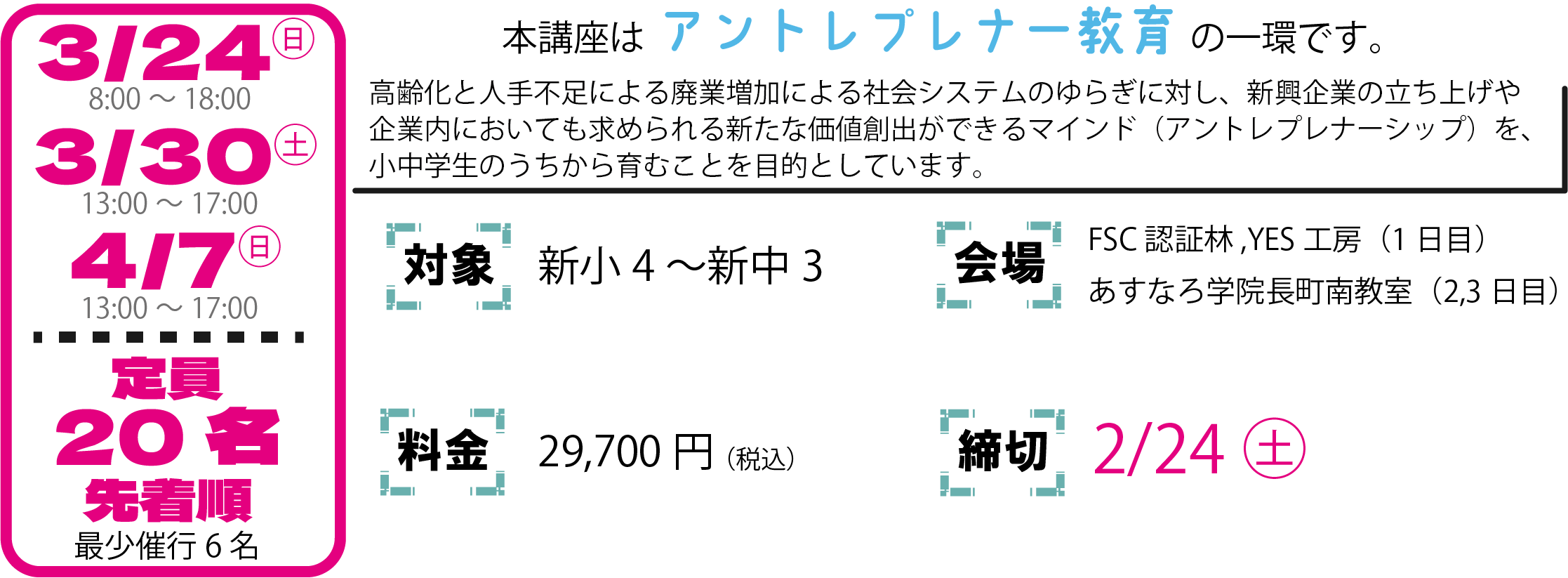 春休み3日間アントレチャレンジ!売れる木製品デザイン&販売講座