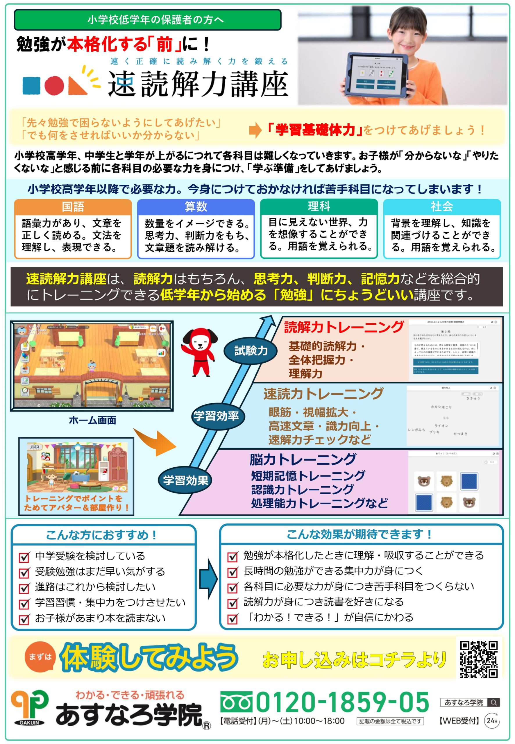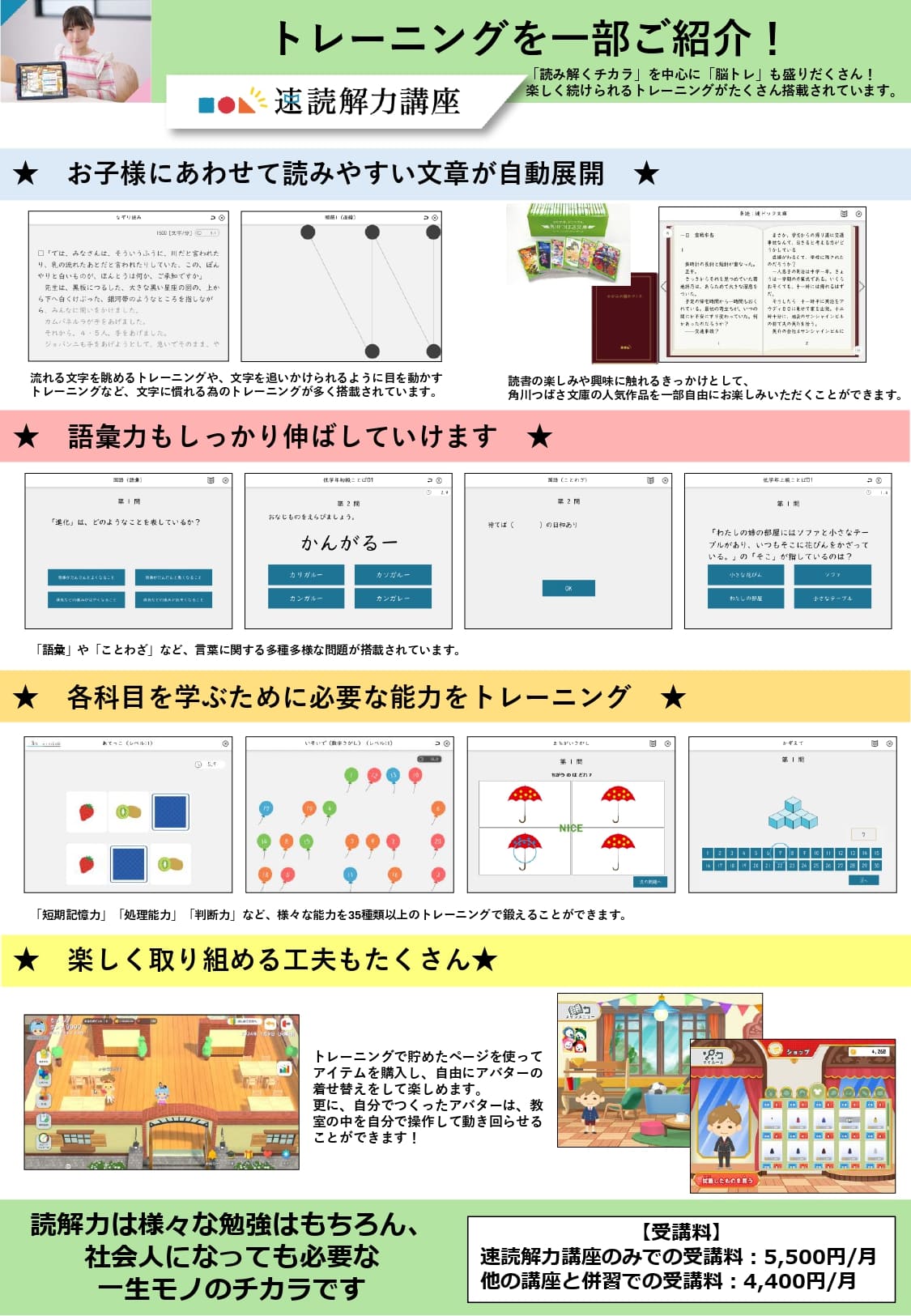速読解力講座でできることについては以下のチラシもご覧ください。(クリックすると拡大されます。)