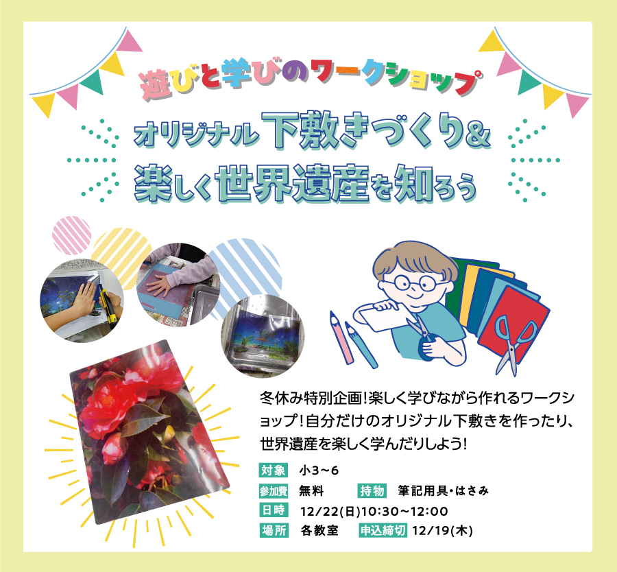 【終了しました】遊びと学びのワークショップ オリジナル下敷きづくり&楽しく世界遺産を知ろう