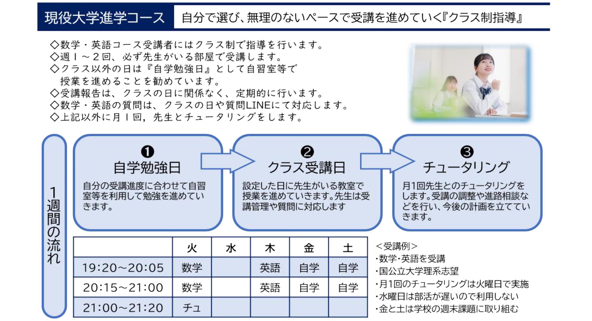 志望校や学力に応じた講座を選択できるので、自分にぴったりの授業がみつかります。