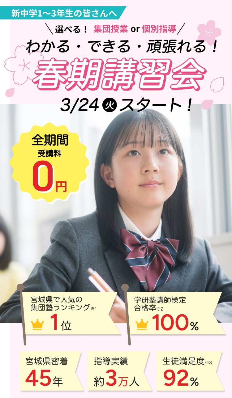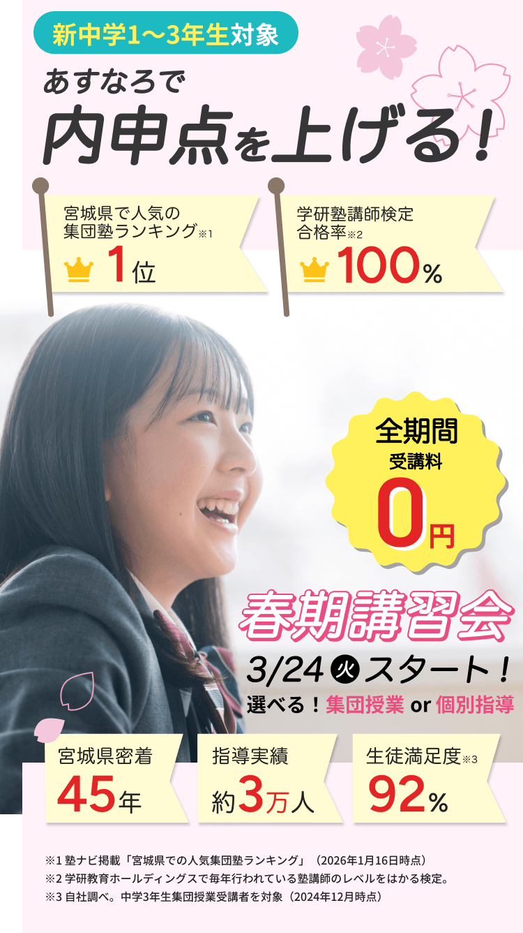 ※2 塾ナビ掲載「宮城県での人気集団塾ランキング」(2026年1月16日時点)