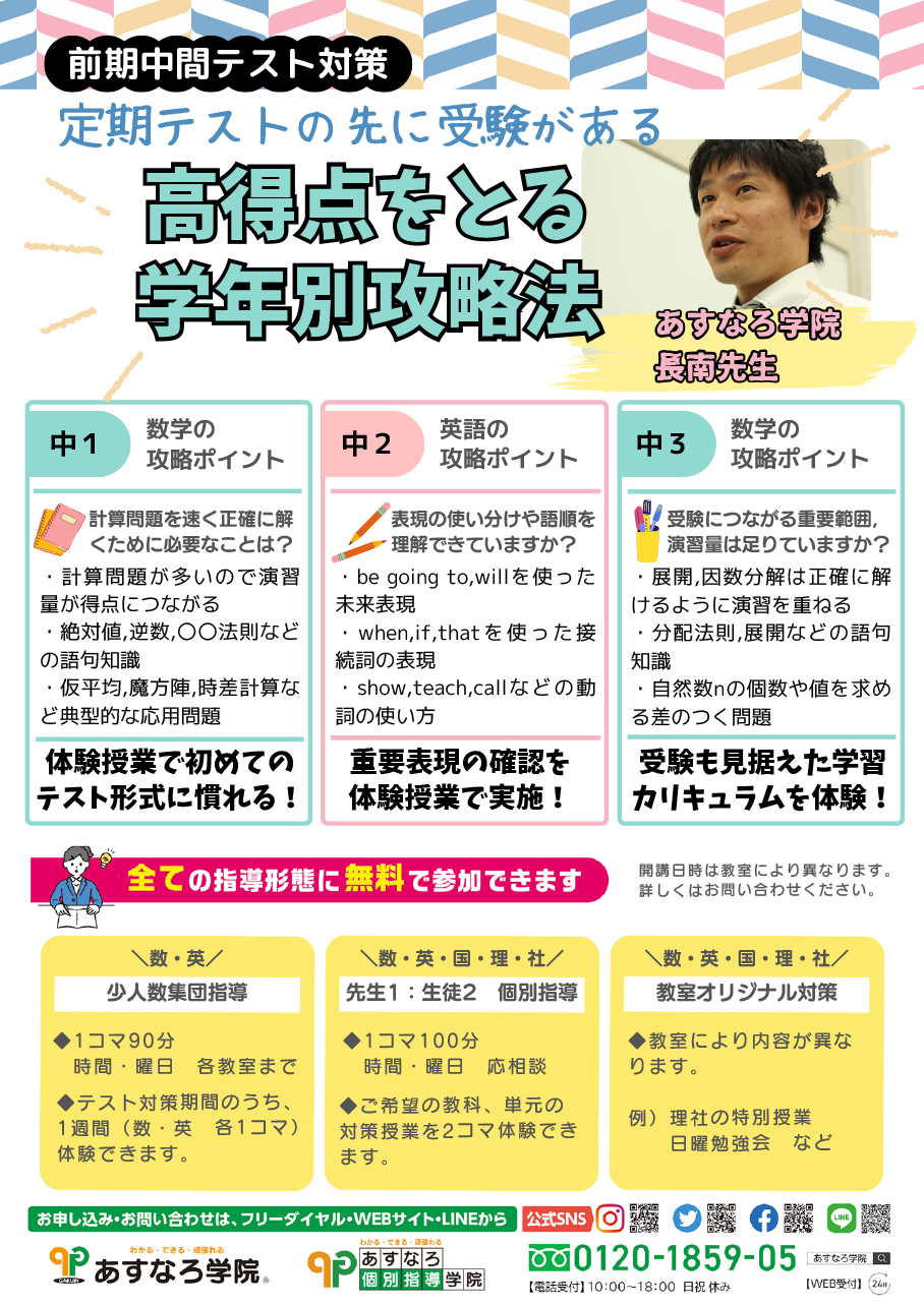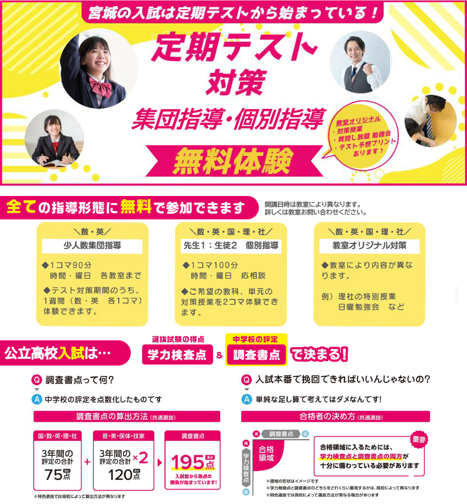 ※お問い合わせの際、備考欄に「定期テスト対策希望」とご記入ください。