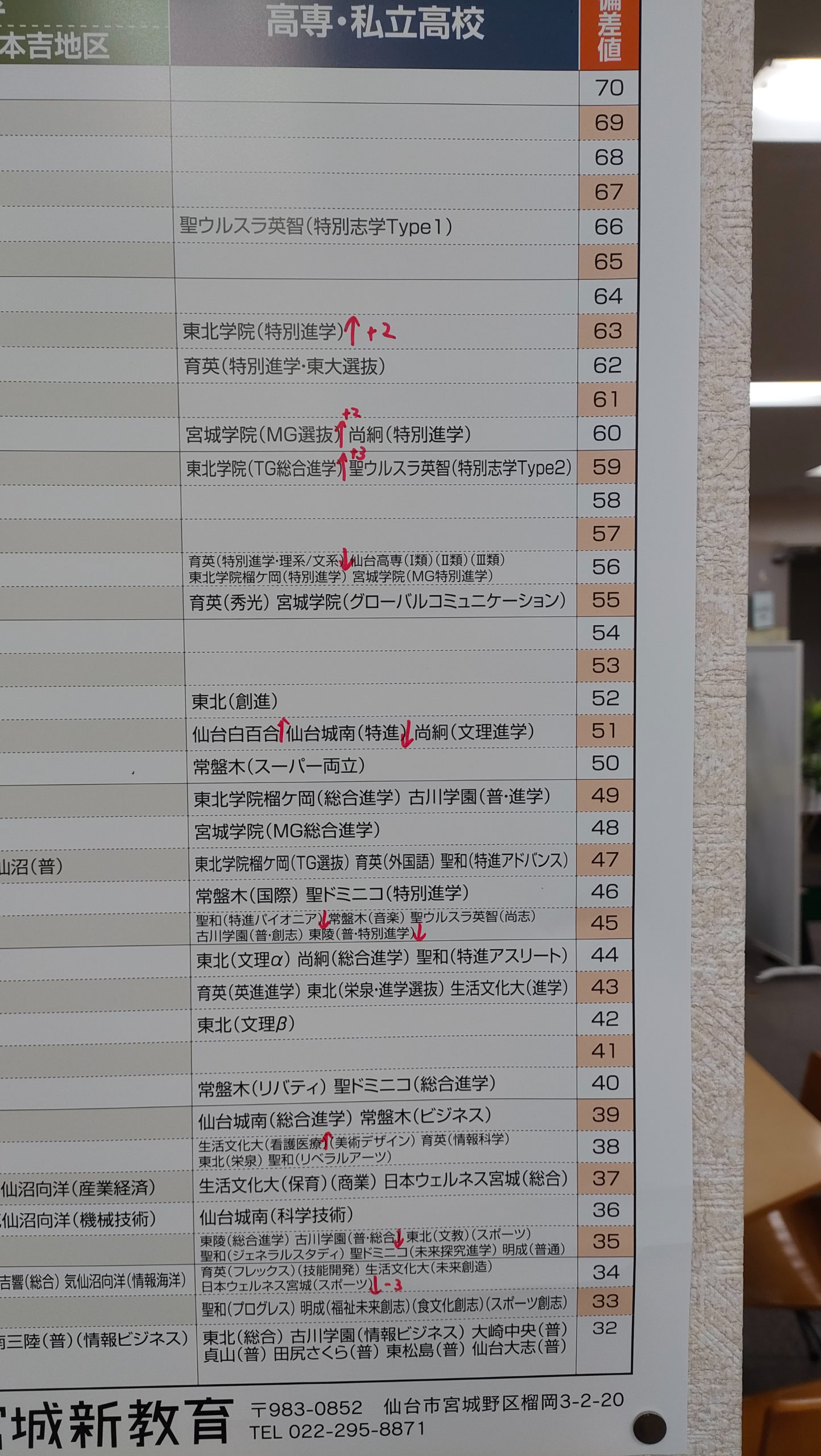 私立高校ではやはり東北学院が大幅に難易度があがりました。