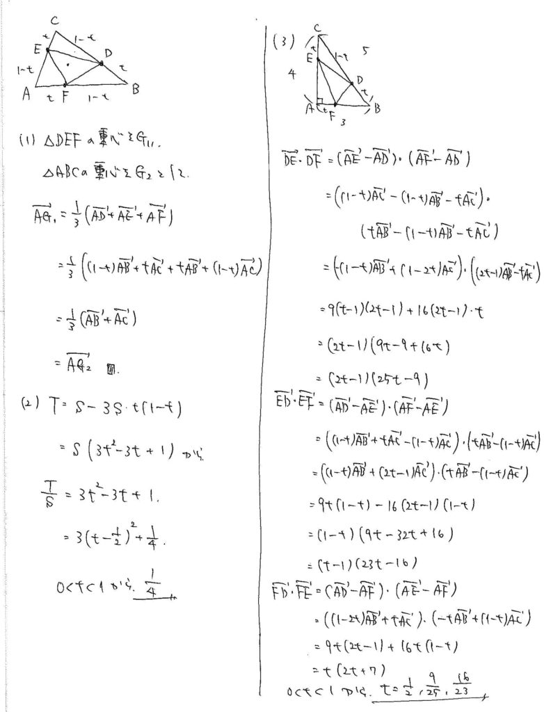 (3)の計算が重かった・・・内積計算を3回やるのは難儀ですね。