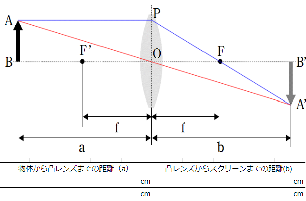 昨日実施した実像をつくる実験ですが、このようなワークシートを作成して行いました。