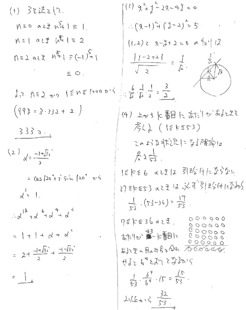 (1)~(3)は超典型問題でしたが、予想通り(4)が強烈でした・・・