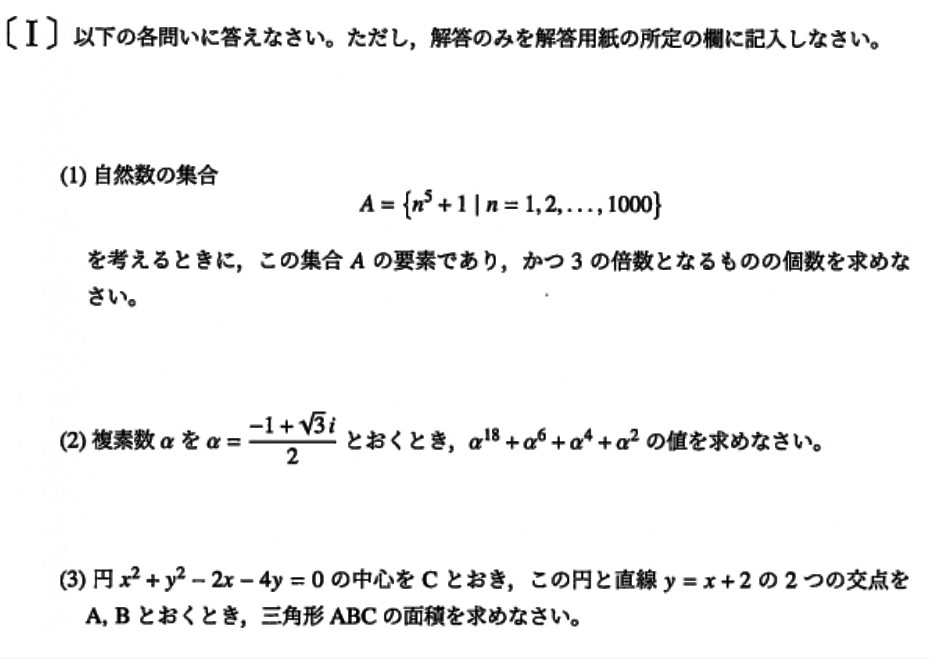 さて、今日の数学は、横浜市立大学2022年、理学部の1番です。