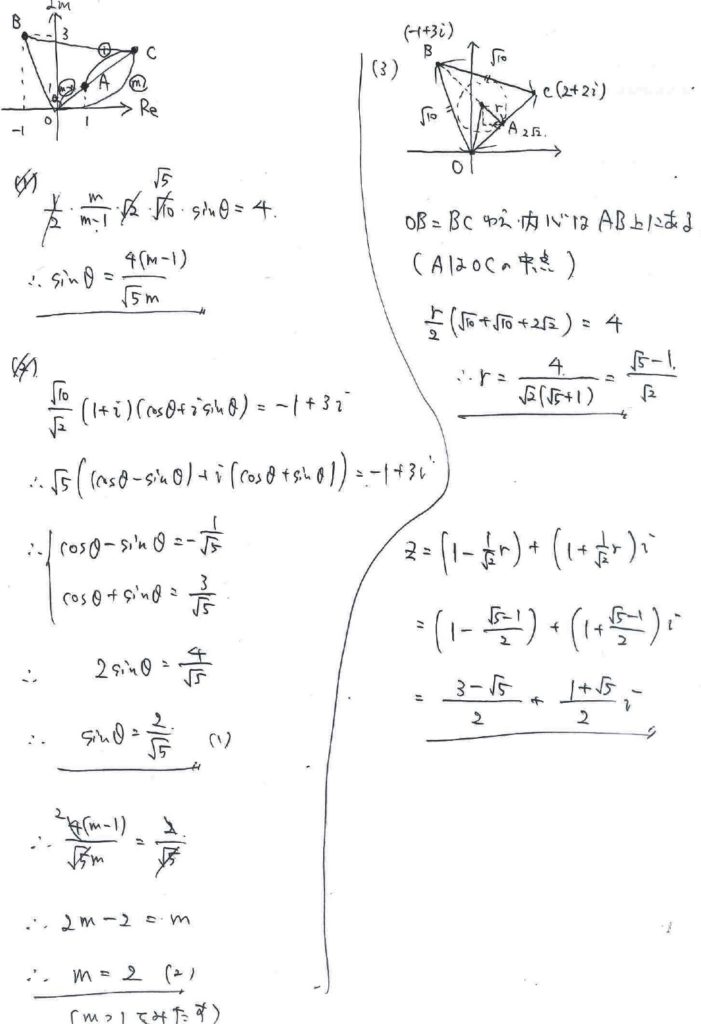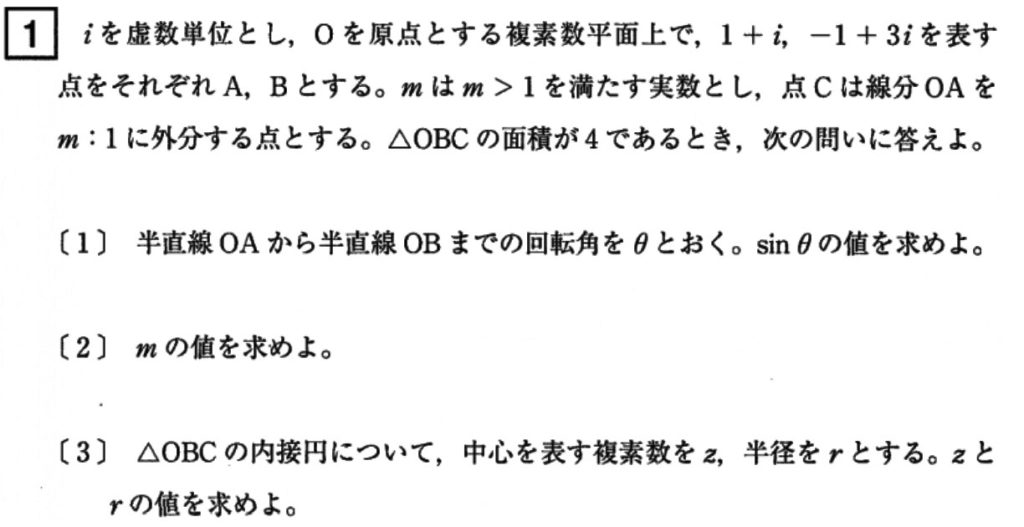 [3]が複素数と内接円という相性の悪そうな設問ですが、いかがでしょうか。