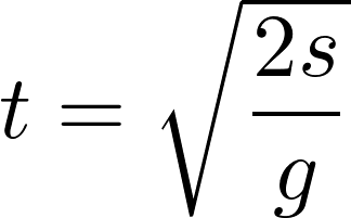 タイトルの t=√(2s/g) ですが,このままじゃ見にくいですね……