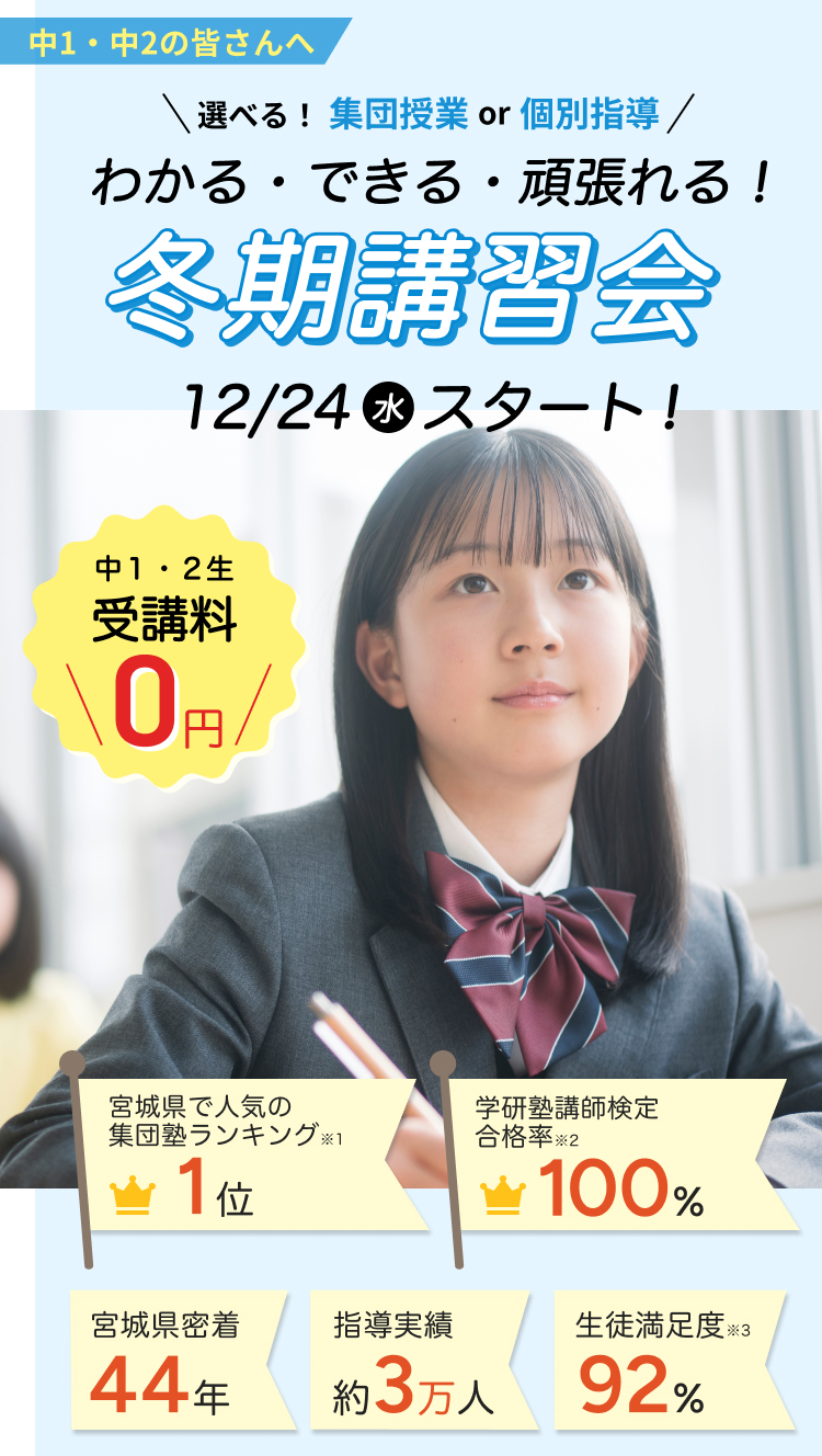 ※1 塾ナビ掲載「宮城県での人気集団塾ランキング」(2025年5月26日時点)